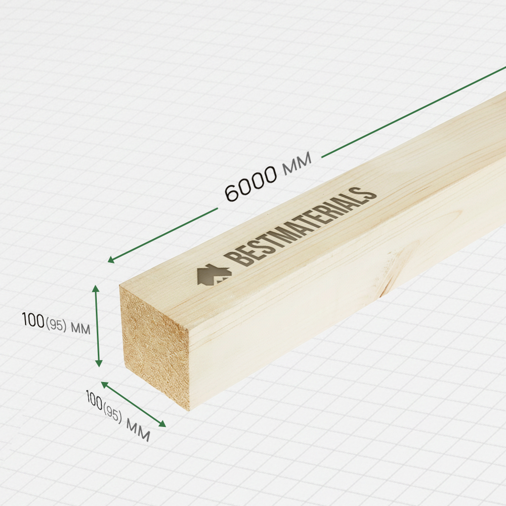 Брус строганный 100x100x6000 (95x95x6000)