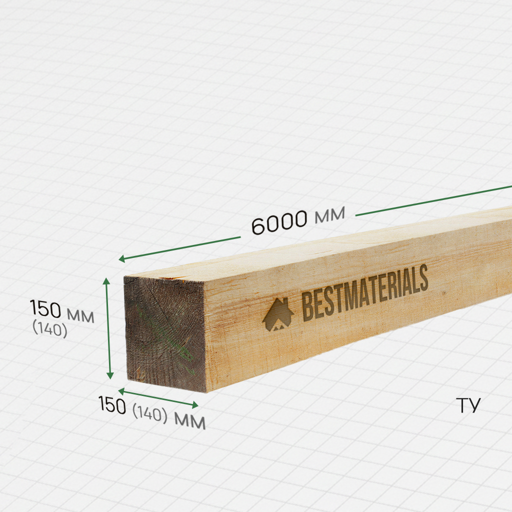 Брус обрезной ТУ 150x150x6000 (140x140x6000)
