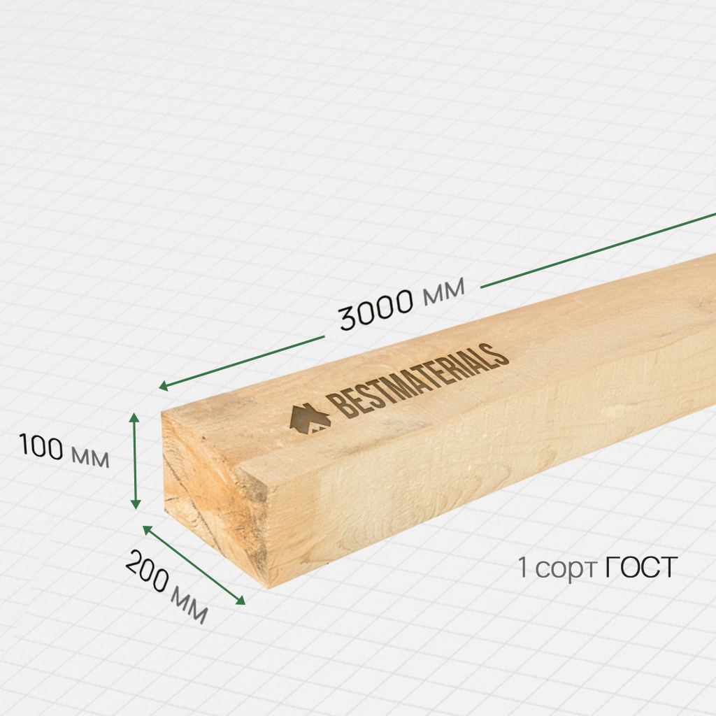 Брус обрезной 100x200x3000 1 сорт ГОСТ
