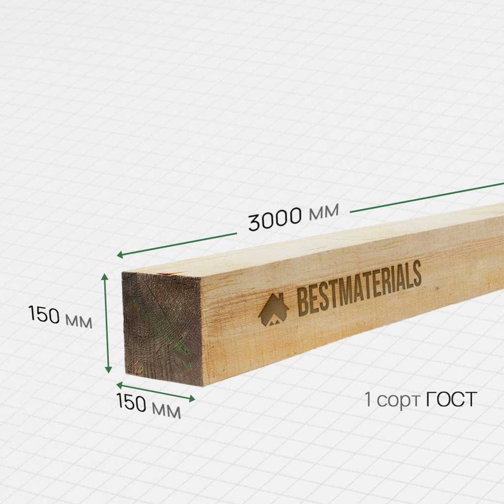 Брус обрезной 150x150x3000 1 сорт ГОСТ