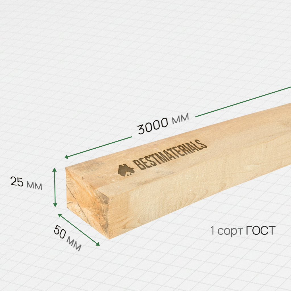 Брусок обрезной 25x50x3000 1 сорт ГОСТ