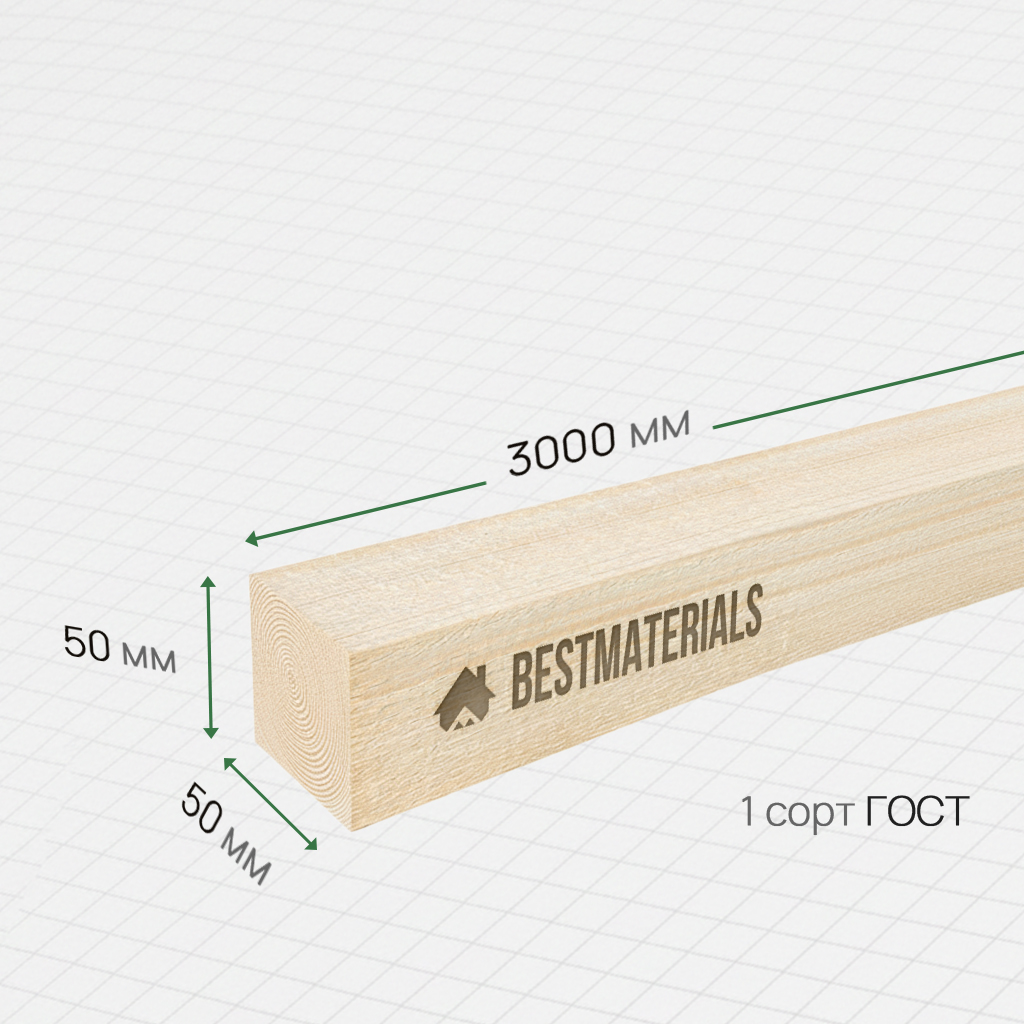 Брусок обрезной 50x50x3000 1 сорт ГОСТ