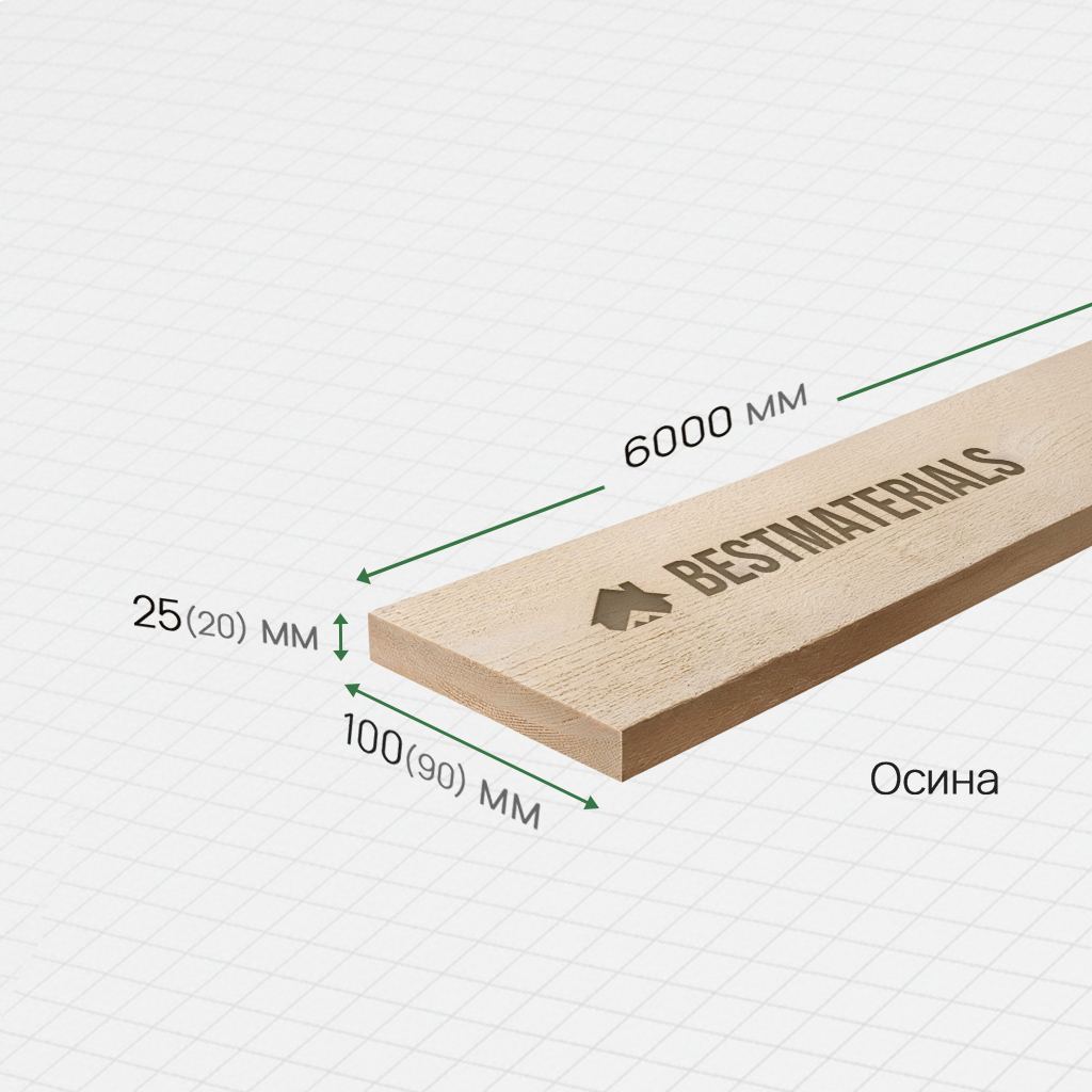 Доска обрезная 25x100x6000 (20x90x6000) Осина
