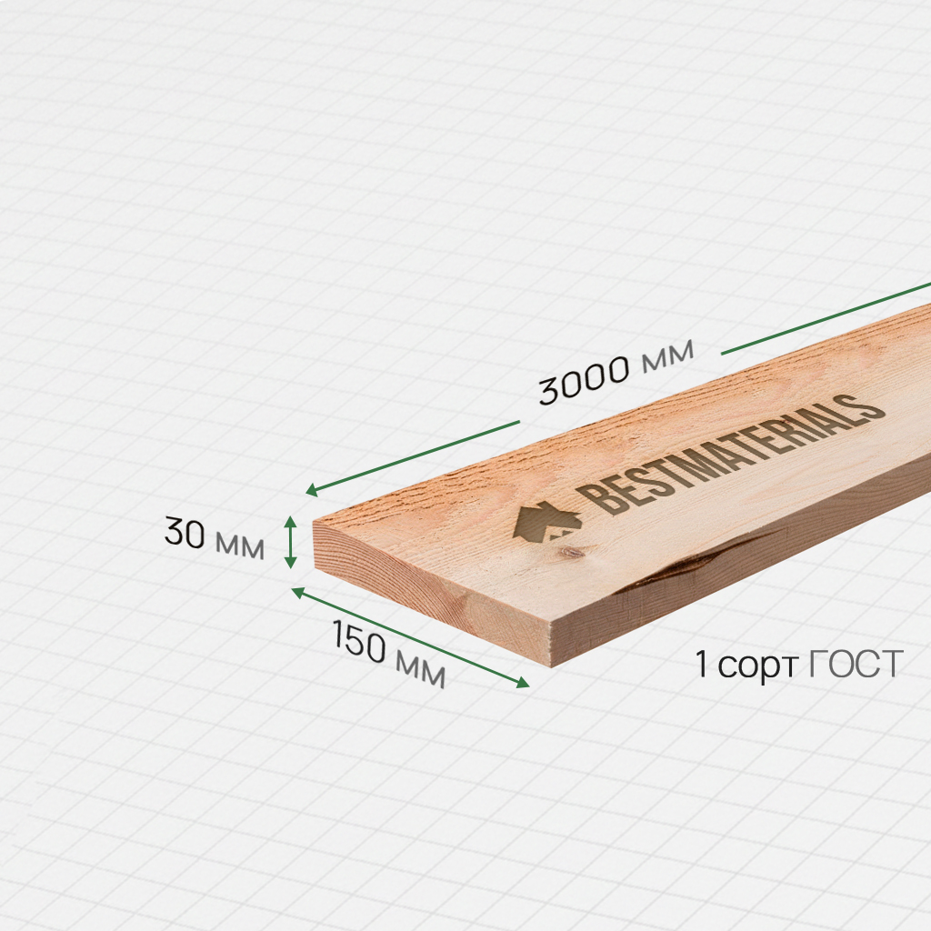 Доска обрезная 30x150x3000 1 сорт ГОСТ
