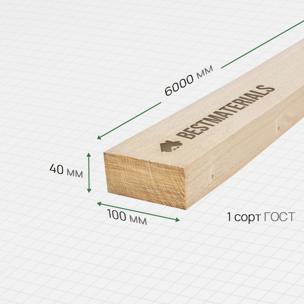 Доска обрезная 40x100x6000 1 сорт ГОСТ
