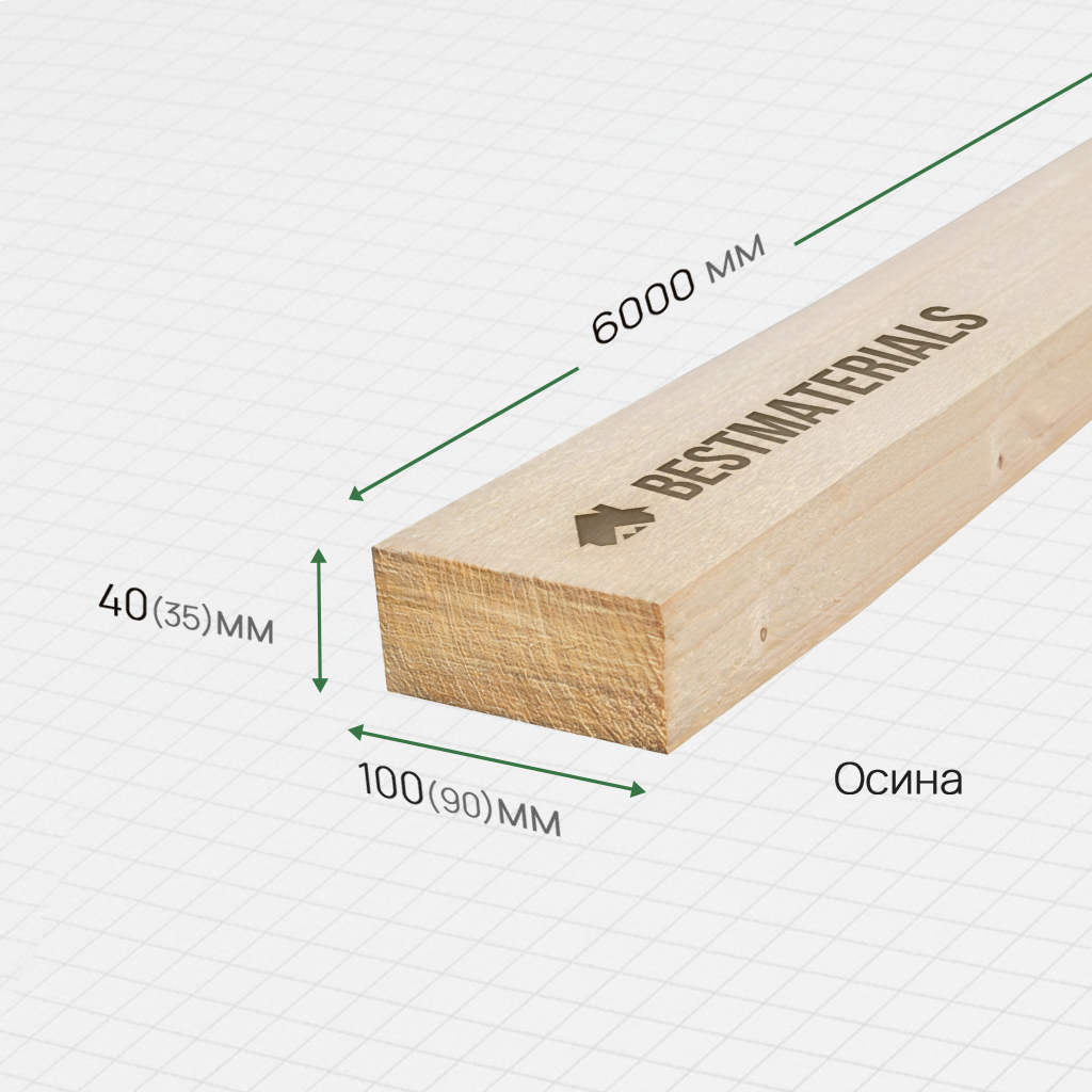 Доска обрезная 40x100x6000 (35x90x6000) Осина