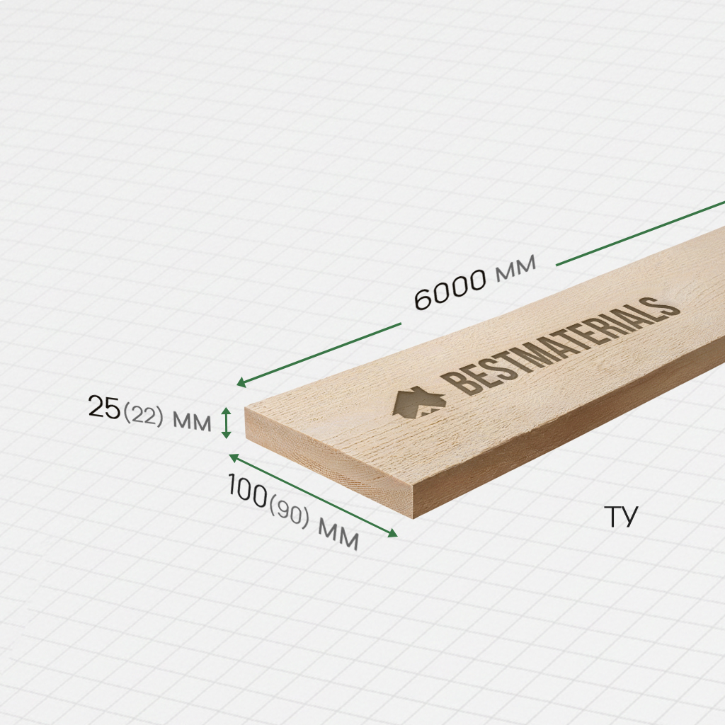 Доска обрезная ТУ 25x100x6000 (22x90x6000)