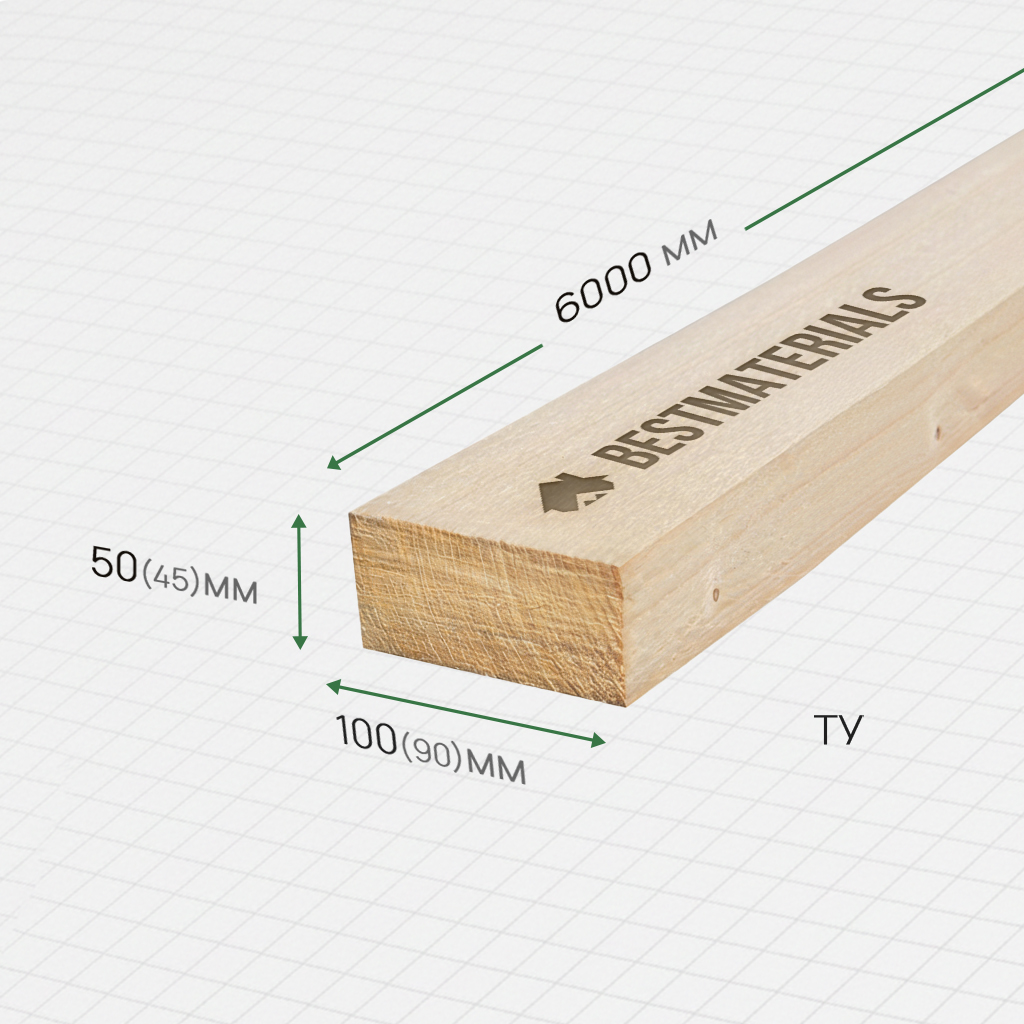 Доска обрезная ТУ 50x100x6000 (45x90x6000)